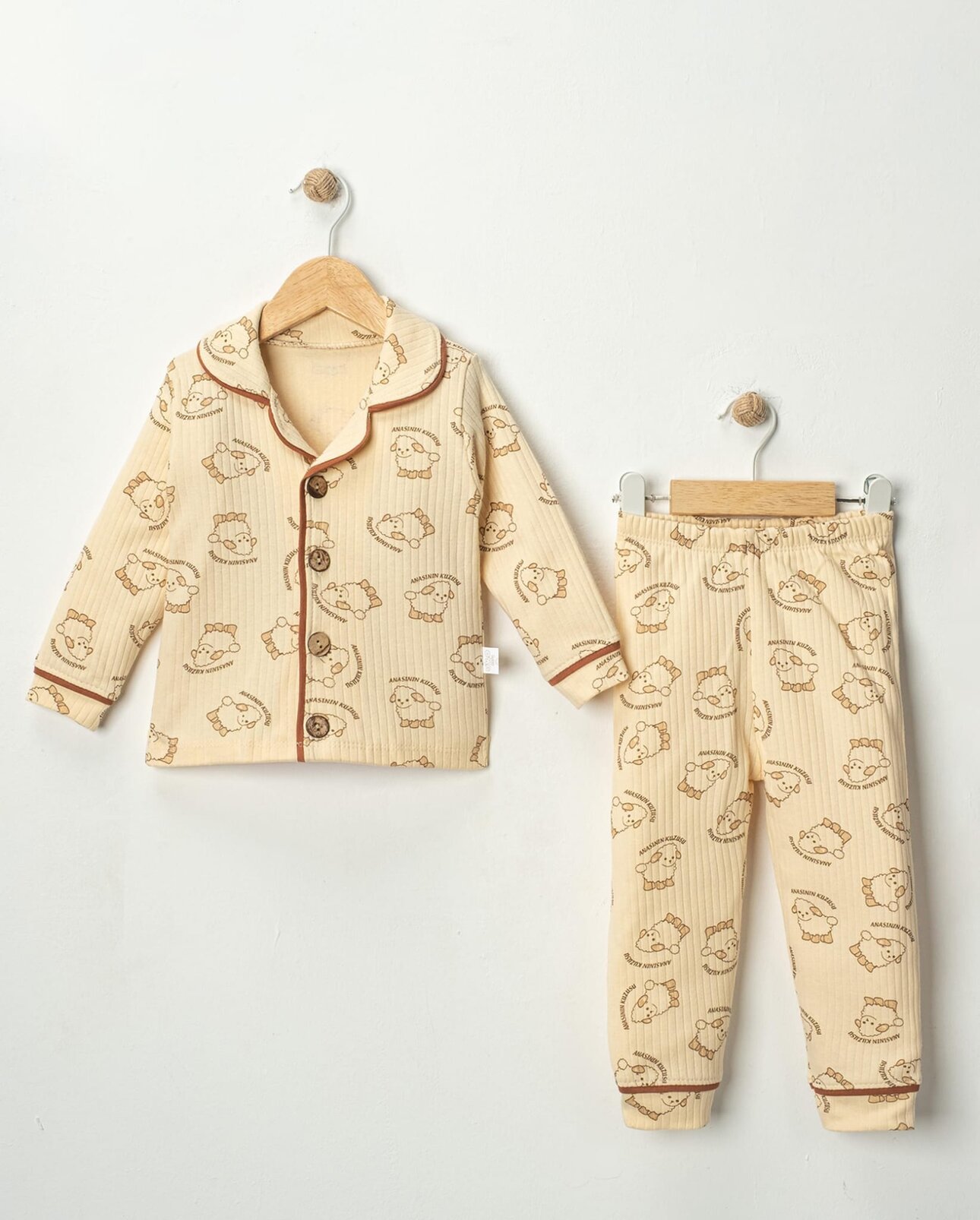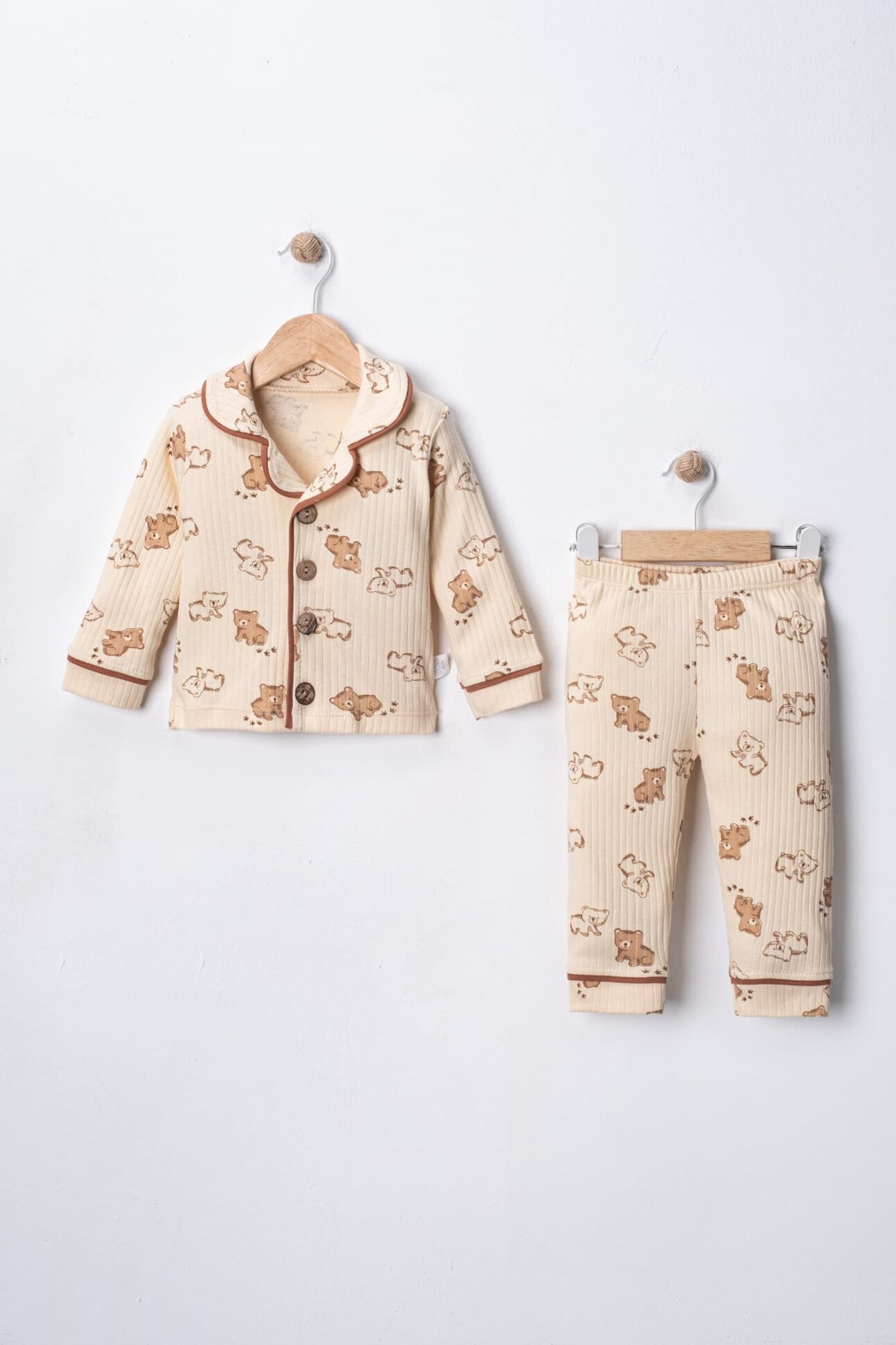 KAHVERENGI BİSİKLET YAKA UZUN KOLLU 2 PARÇA BELİ LASTİKLİ ERKEK ÇOCUK BEBEK TAKIM