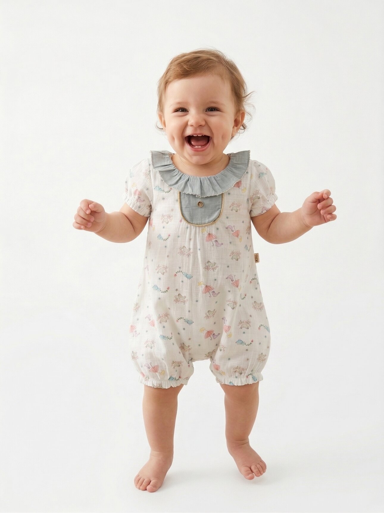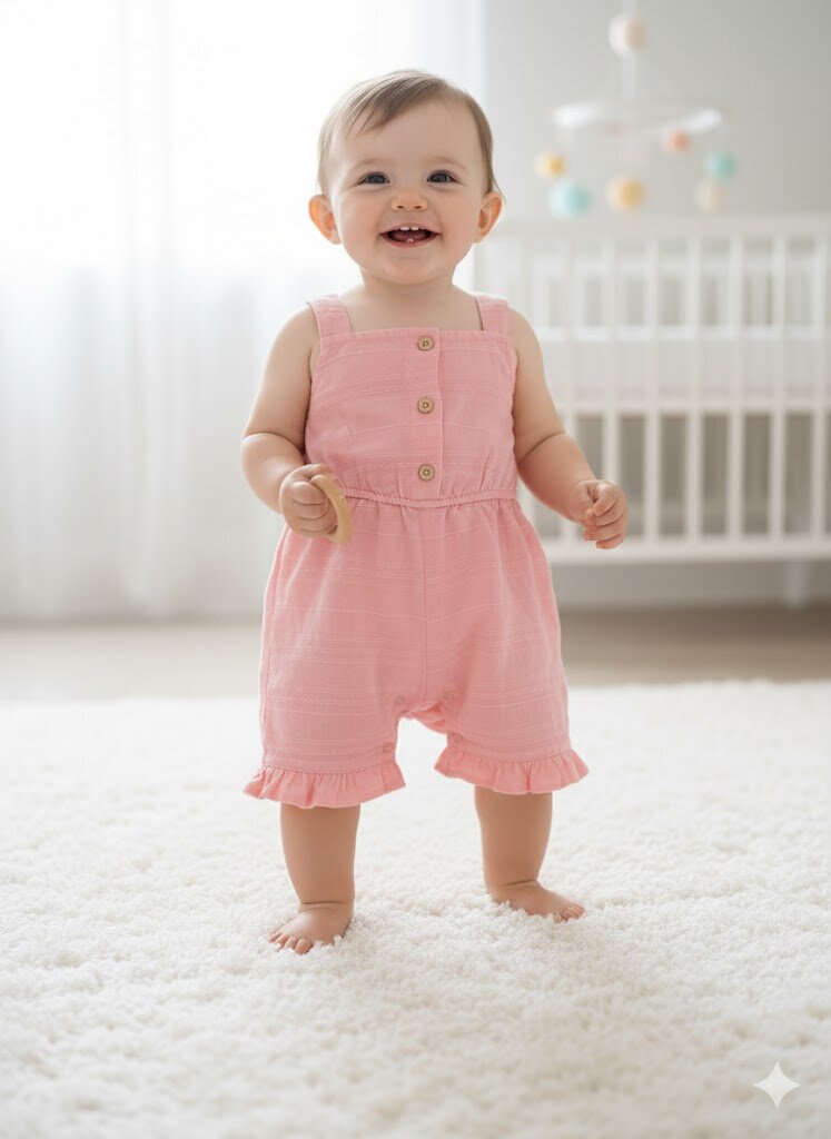 Yazlık Pamuklu Müslin Çiçek Desenli Kız Bebek Tulum