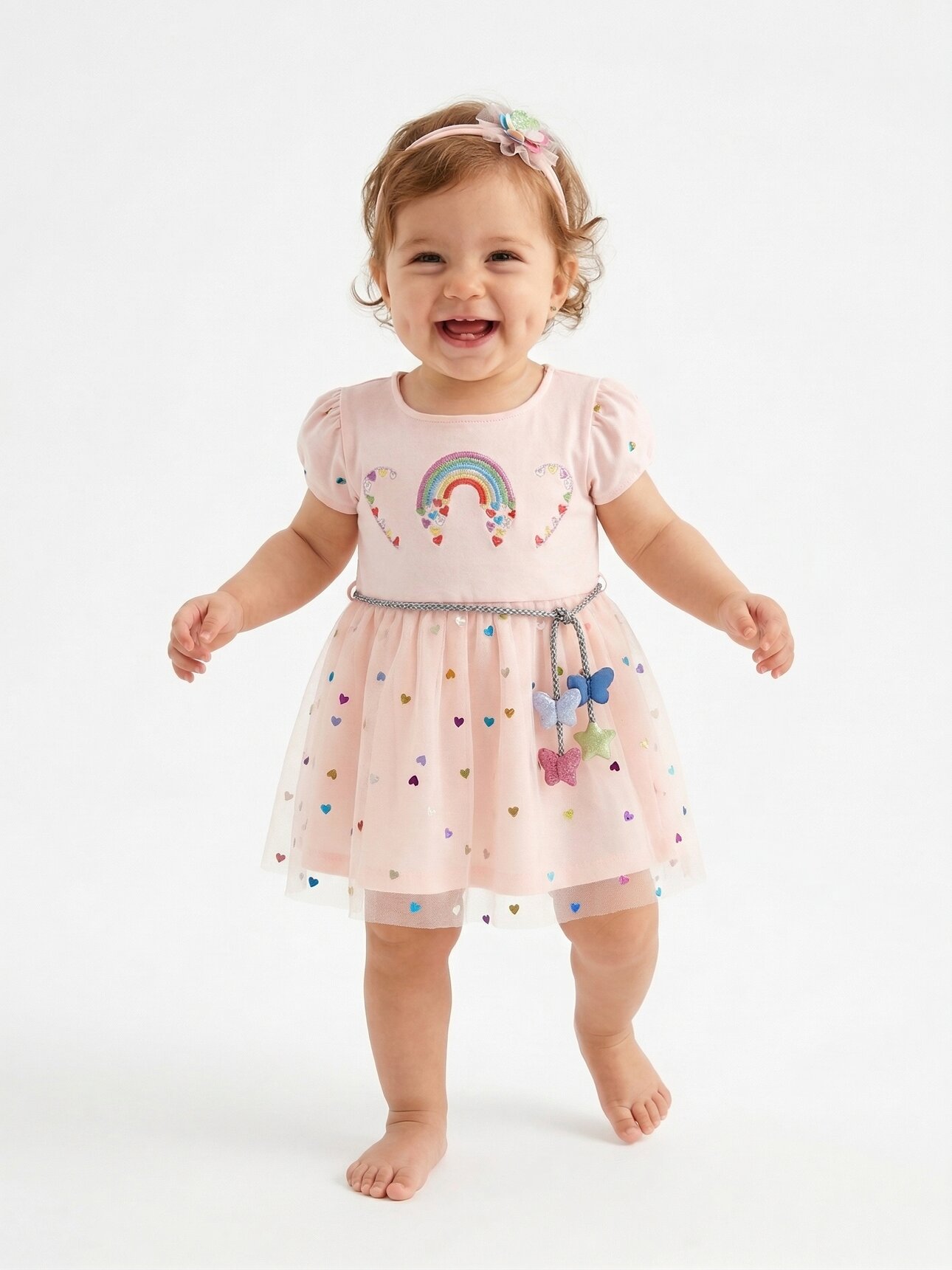 Pamuklu Tül Detaylı 2li Kız Bebek Elbise