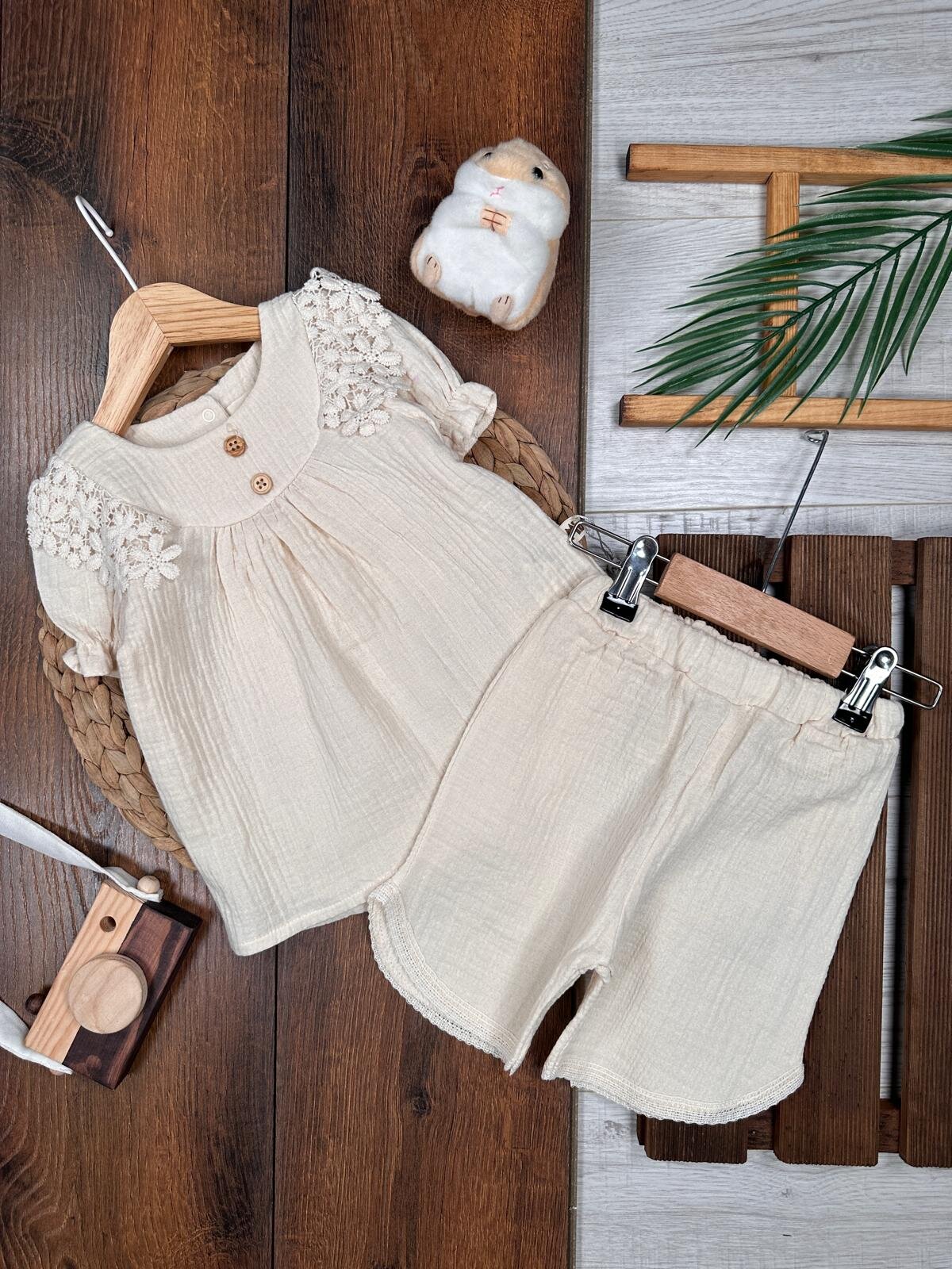 Organik Pamuklu Müslin Kumaş Erkek Bebek 2li Takım