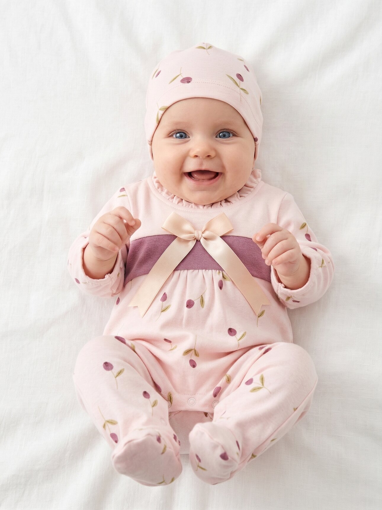Pamuklu Kaliteli Nakışlı Fiyonklu 2li Kız Bebek Tulum