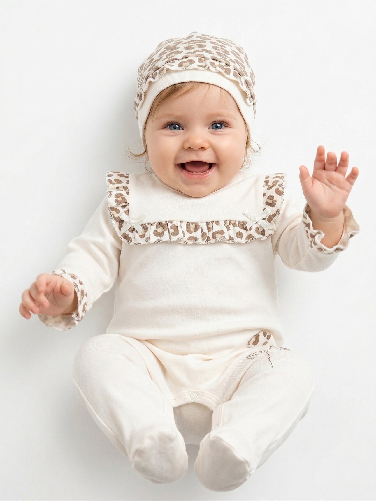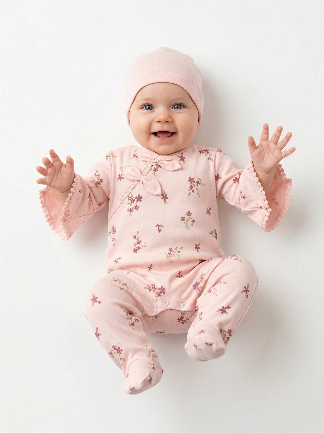 Pamuklu Çiçek Desenli Müslin 3Lü Kız Bebek Takım