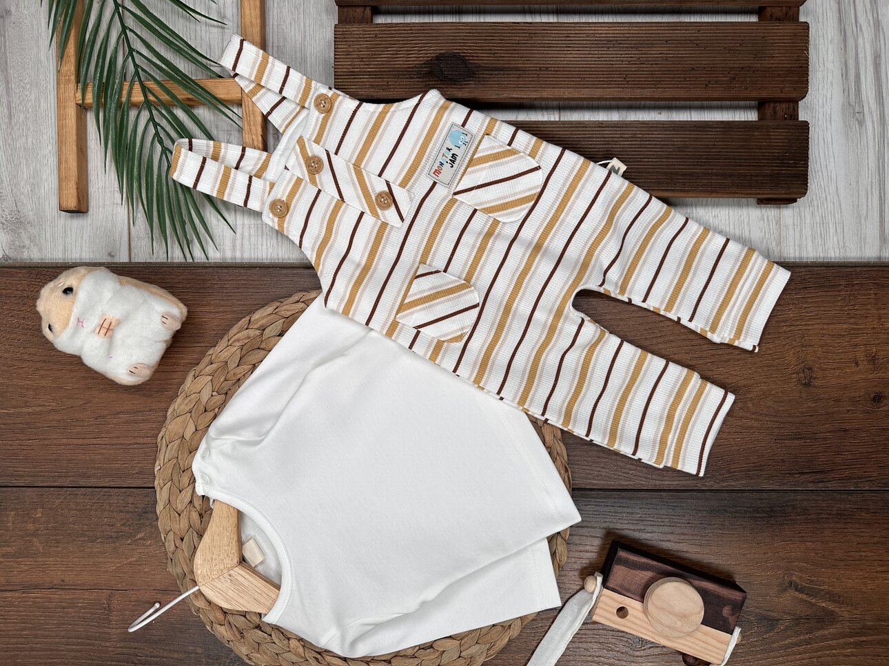Pamuklu Çizgili Palmiye Detaylı 3lü Erkek Bebek Takım
